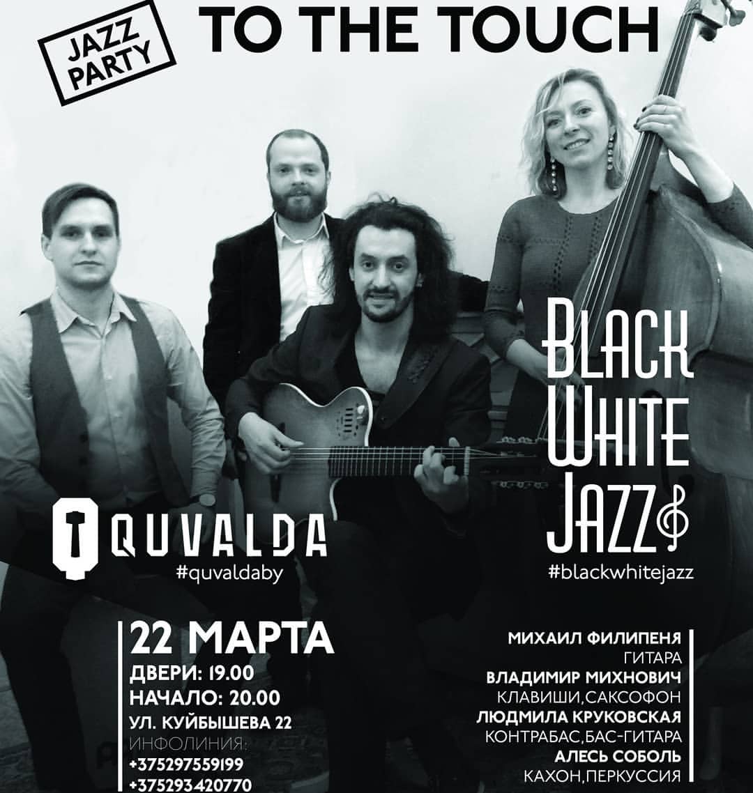 На этот раз BlackWhiteJazz предлагает насладиться чарующими звуками гитары Михаила Филипени – одного из лучших гитаристов нашей страны. Вместе с ним на сцену выйдут Владимир Михнович, Людмила Круковская и Алесь Соболь. Вы услышите программу, полностью состоящую из авторских произведений. “To The Touch” – это полуакустическое звучание, которое поможет передать всю хрупкость мысли, облаченную в упругий грув, рождающий бабочек внутри.